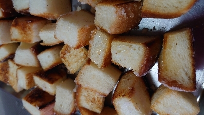 余った食パンをフライパンで焼くだけ 食パンラスク レシピ 作り方 By Tomocafe 楽天レシピ