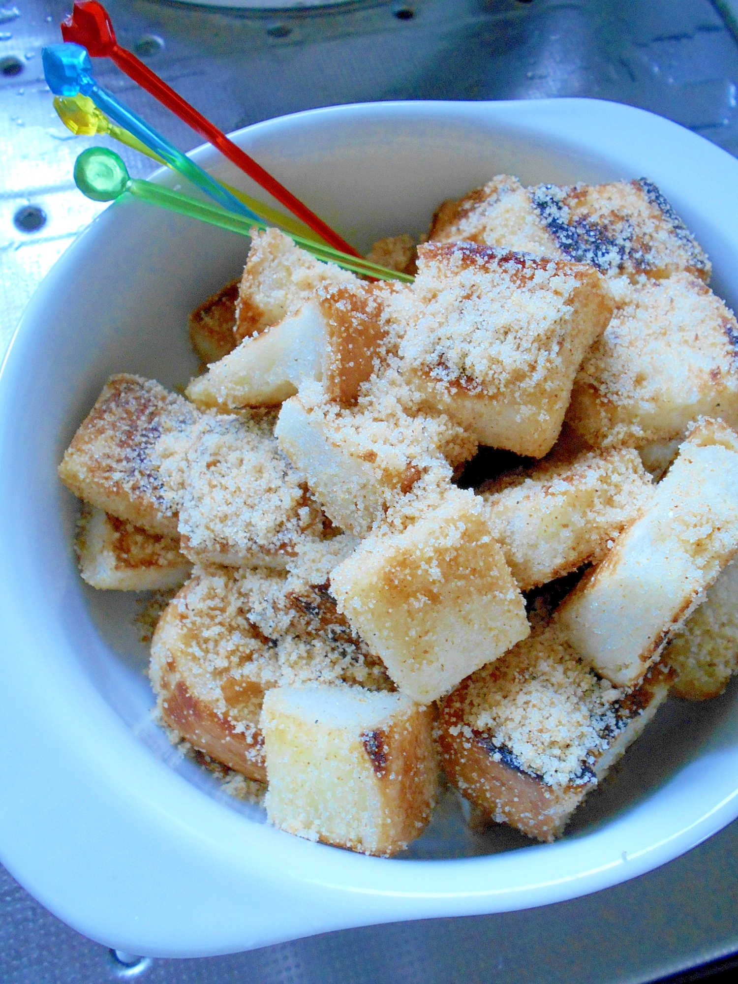 フライパンで簡単 食パンでクルトン風おやつ レシピ 作り方 By Tomtom06 楽天レシピ
